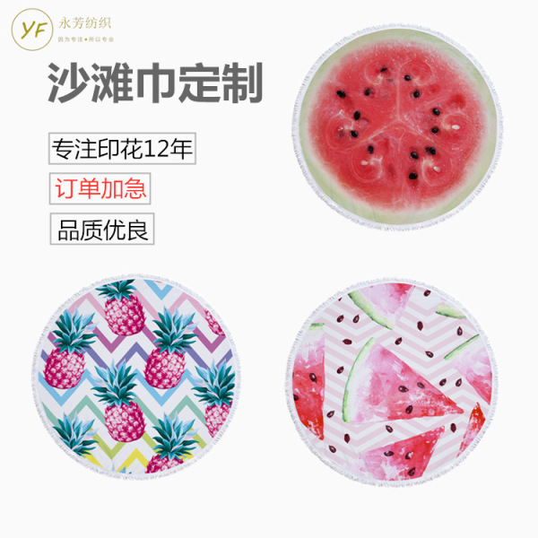 我公司常年生产各种材质圆毯沙滩巾,涤纶。价格合理,质量稳定,可以承接大小订单,可以根据客户要求打样,定做生产。