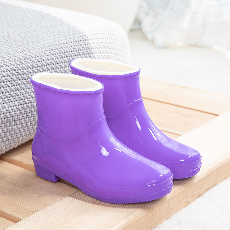 外贸纯色雨鞋短筒成人女士室外雨林徒步防水防滑水鞋加绒保暖雨靴