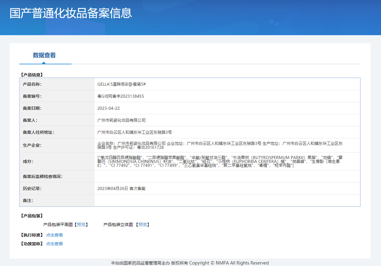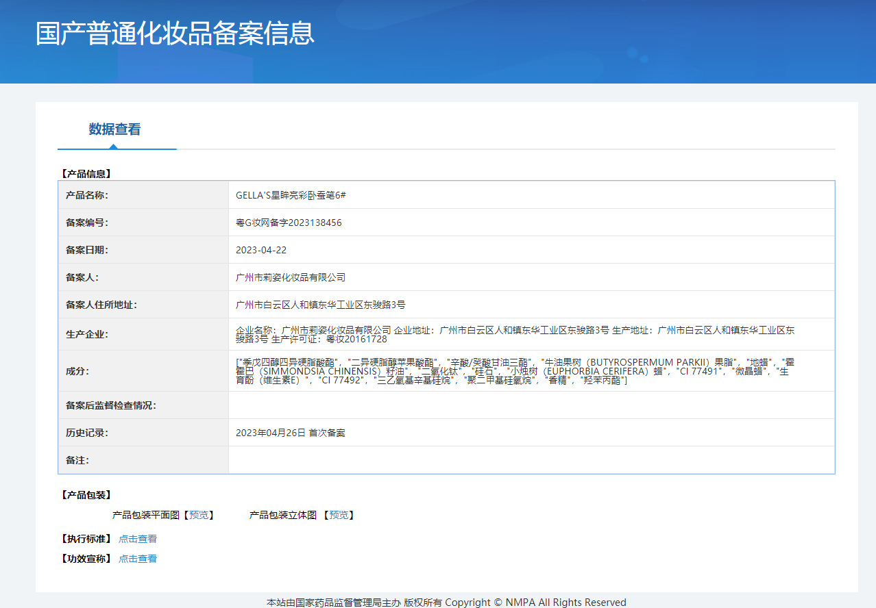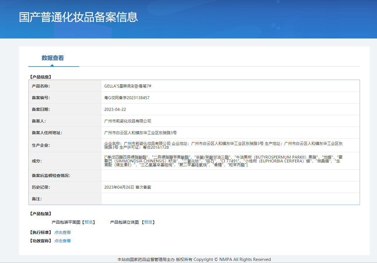 非特定化粧品届出証番号 広東Gメイクアップネットワーク準備番号 2023197333