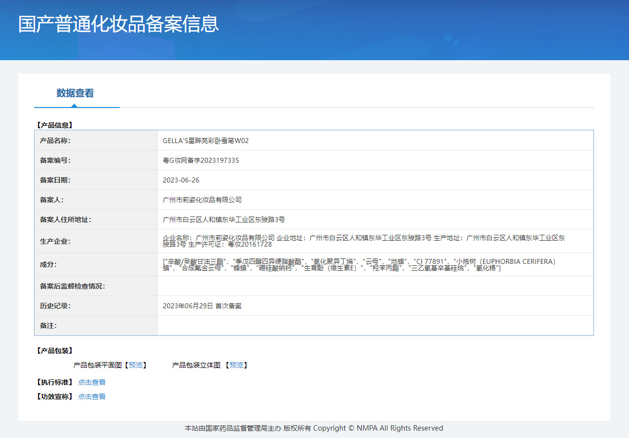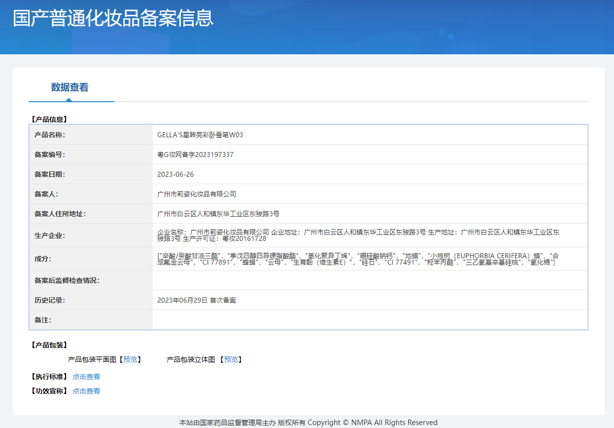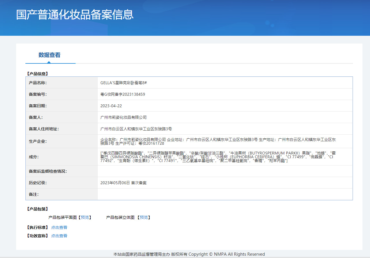 非特定化粧品届出証番号 広東Gメイクアップネットワーク準備番号 2023197333
