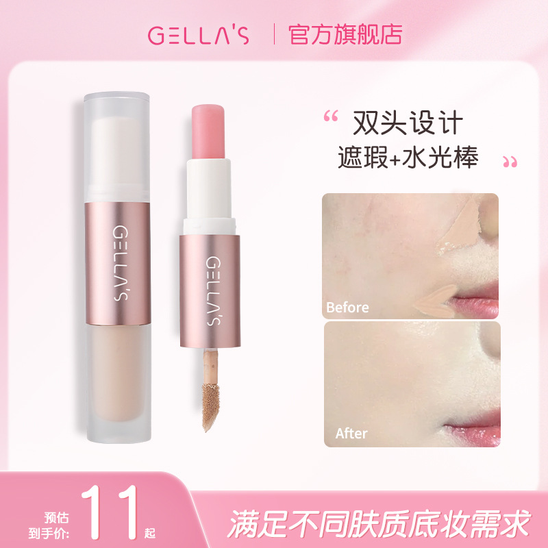 ゲルラスのダブルヘッドのコンシーラーは暗い目の周りのニキビ跡を隠します。顔は暗い傷を隠します。