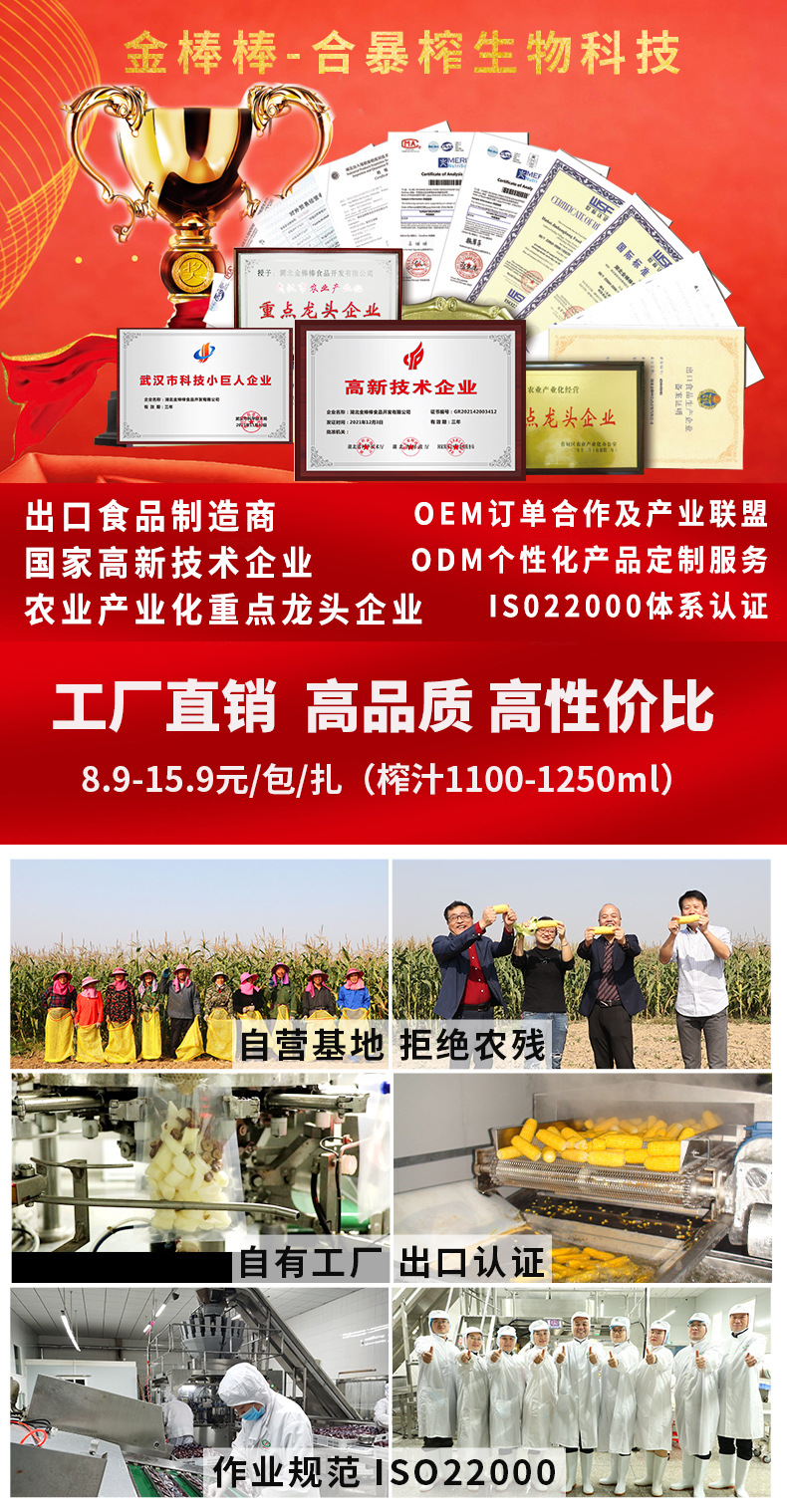 合暴搾りの香りの甘いトウモロコシの非遺伝子組換えの果物の甘いトウモロコシの粒は今トウモロコシの汁のホテルの飲食の商用卸売りを搾ります。