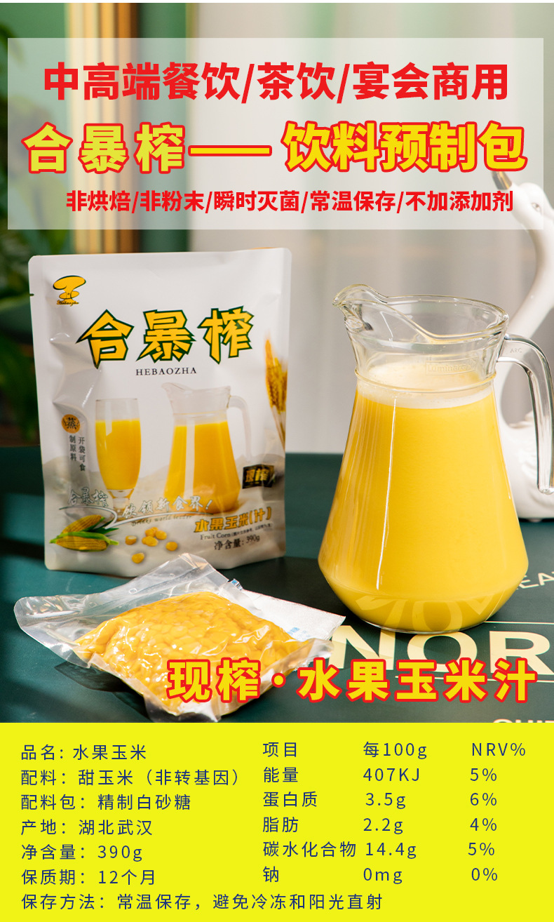 搾りたてのトウモロコシジュース飲料、フルーツ入り冷温ドリンク、食事代わり、業務用、穀物卸売