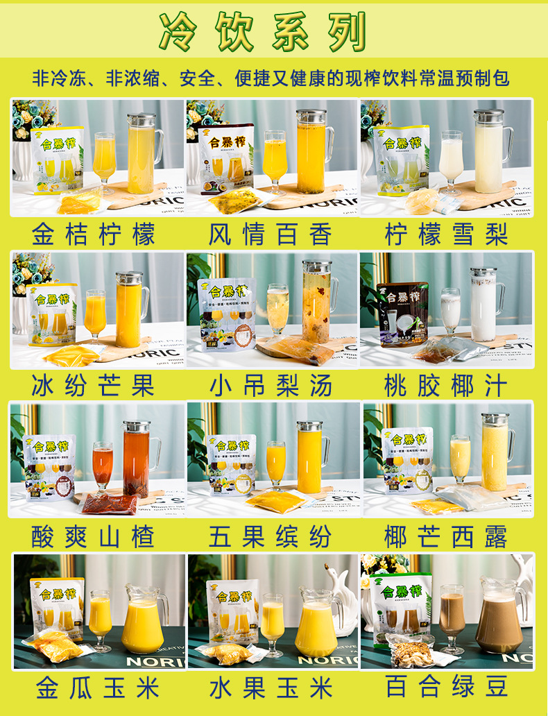 金瓜トウモロコシ/390g,フルーツコーン/390g,ミルクコーン/410g,ナツメ生豆麦/290g,五穀豊登/290g,クルミピーナッツ/290g,クルミ黒米/290g,山薬ナツメ/300g,黒五珍/290g,赤五珍/290g,百合緑豆/310g,オレンジレモン/235g,風情百香/260g,アイスマンゴー/380g,レモンシドニー/360g,酸爽サンザシ/360g,五果カラフル/410g,ココナッツ芒西露/460g,小吊梨スープ/400g,桃ゼリーココナツジュース/260g,蜜雪桃果/370g,奇妙な野菜/430g,竹サトウキビ茅根飲/400g