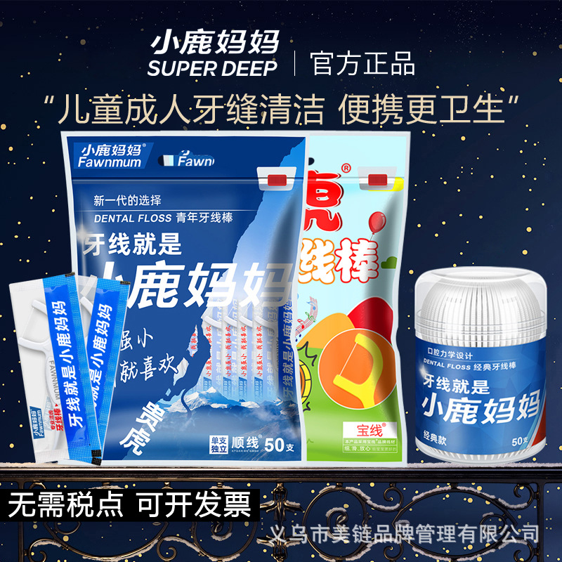 牙线小鹿妈妈牙线家用食品级牙线独立包装双线家庭装青年款袋装