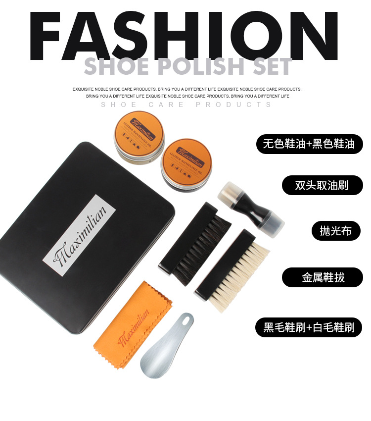 メーカー直販馬毛ブラシ靴油セット黒無色清潔保守油皮服看護靴磨きツール
