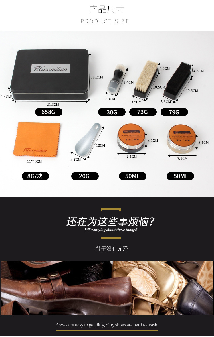 マキシミリアン靴ブラシと靴磨きセット、革靴用メンテナンスオイル、本革靴ブラシ、靴磨き、クリーニングケア