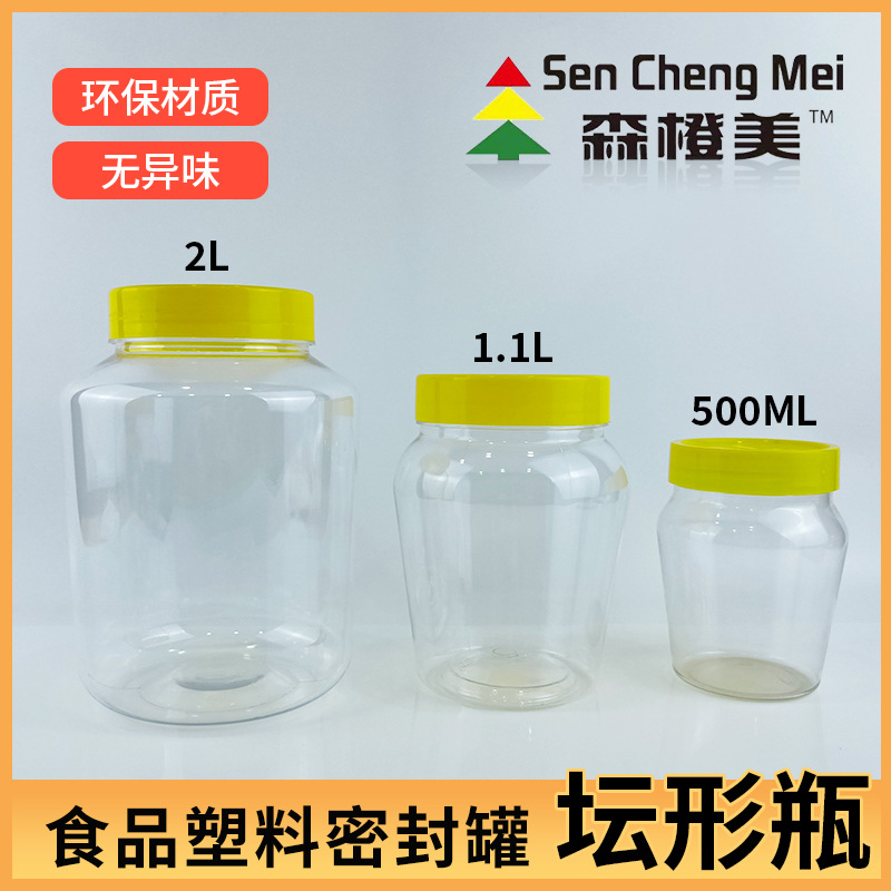 现货批发500ml2kg坛形瓶密封罐辣椒酱干果食品塑封透明带盖塑料罐