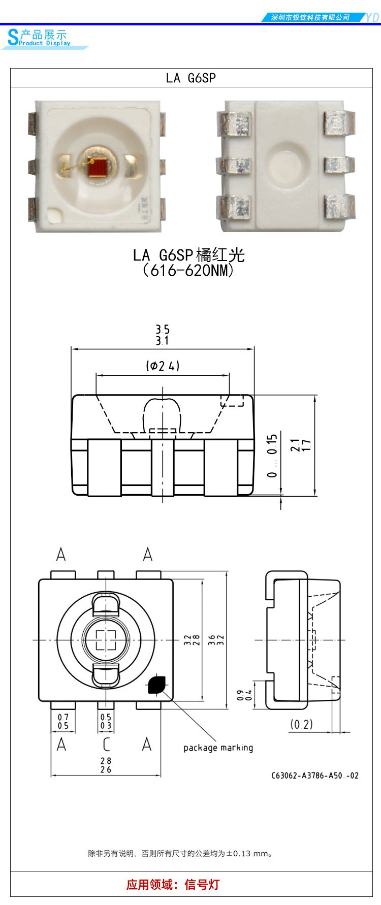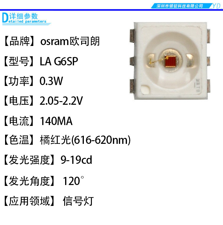 Oram欧司朗led la g 6spオレンジ赤色光3537電球0.3w小電力信号灯光源
