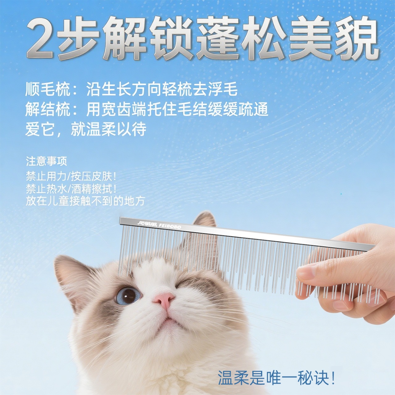 肥啵啵浮毛专用梳子 长毛猫短毛猫梳浮毛不锈钢合金梳子梳毛打理