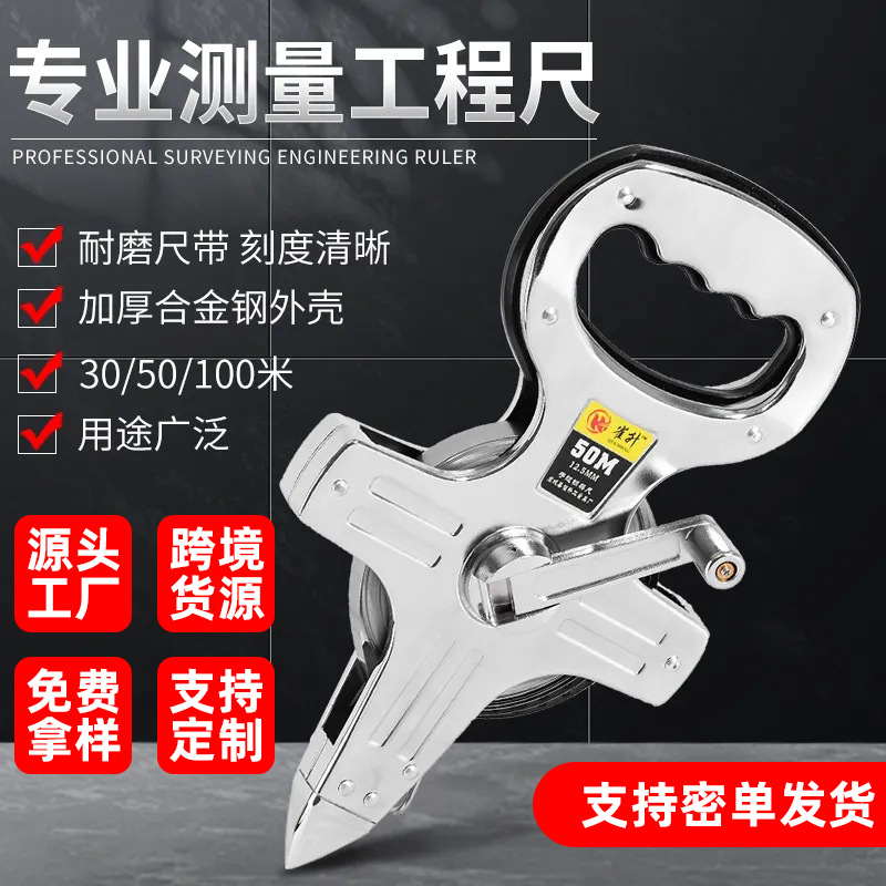 ステンレスの手持ち定規の鋼の定規の鋼の巻尺の建築工事は丈夫な巻尺の30メートルの50メートルの100メートルを測量します。