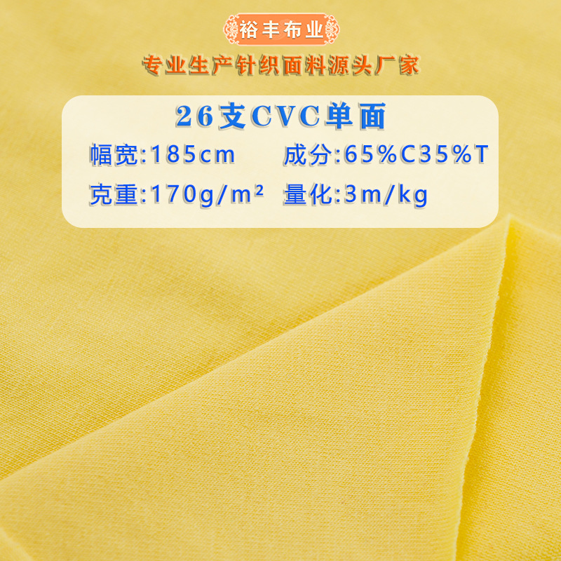 ニット生地26本cvc片面汗布ポリエステル綿平織りニット春夏子供服スポーツウェアtシャツ生地