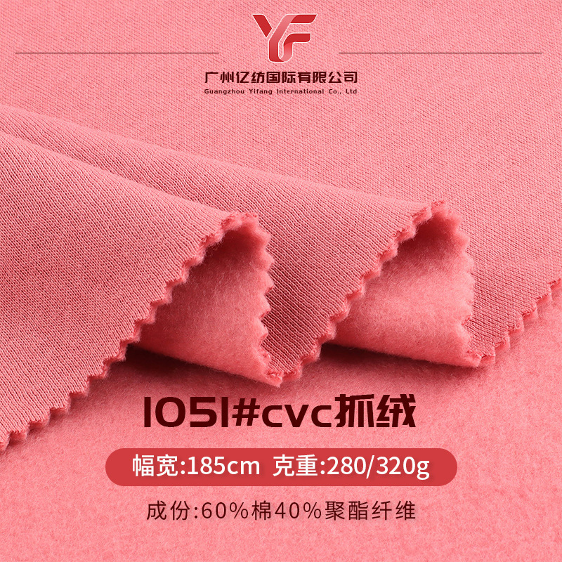 现货cvc抓绒卫衣面料单面绒布棉涤套装加厚卫衣布料厂家批发
