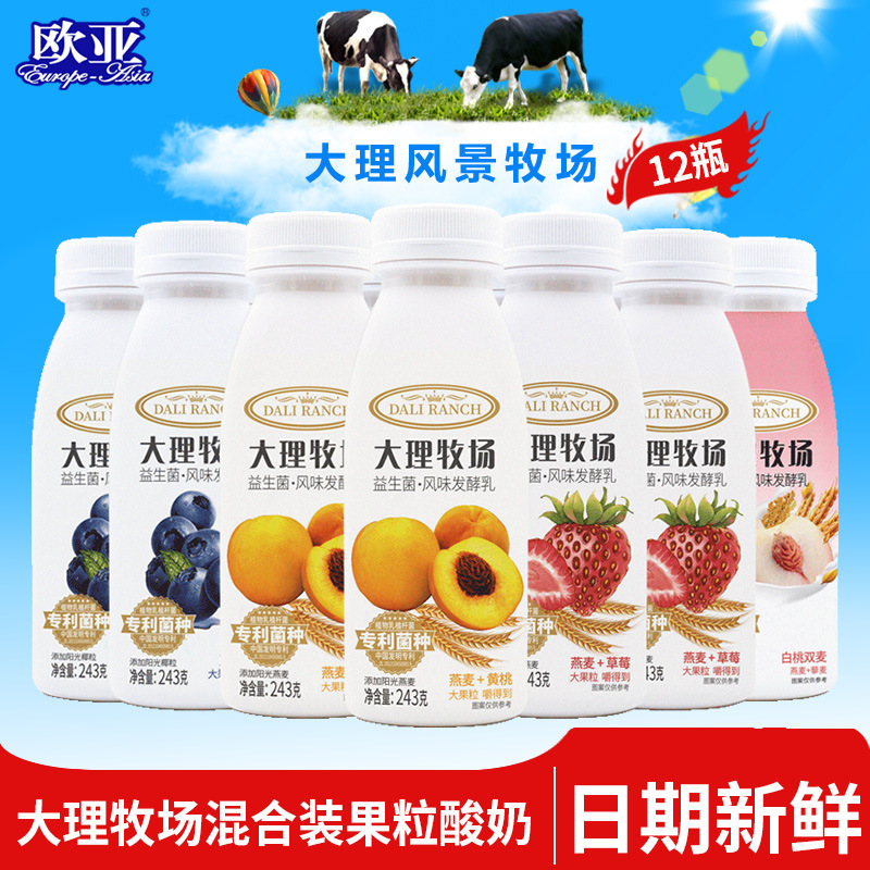 ユーラシア牛乳大理牧場低温果粒ヨーグルトいちご黄桃ブルーベリー白桃果粒243g * 12本