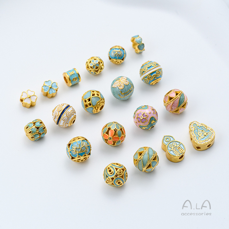 保色銅メッキ砂金焼藍景泰藍円珠花球四葉草瓢箪隔珠diyビーズアクセサリー部品