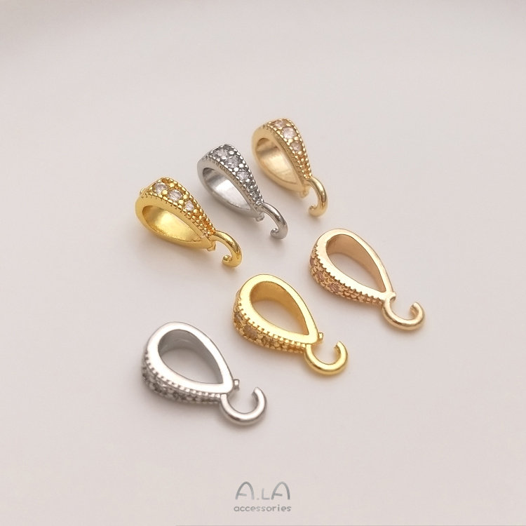カラー 14k金色ジルコン開口吊りボタン1個,18k金色ジルコン開口吊りボタン1個,白い金色のジルコンの開口部の吊り下げ1つ,18k金色ジルコンの新型吊りボタン1個