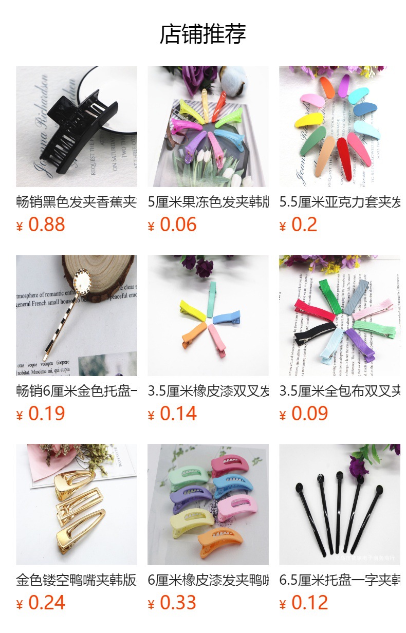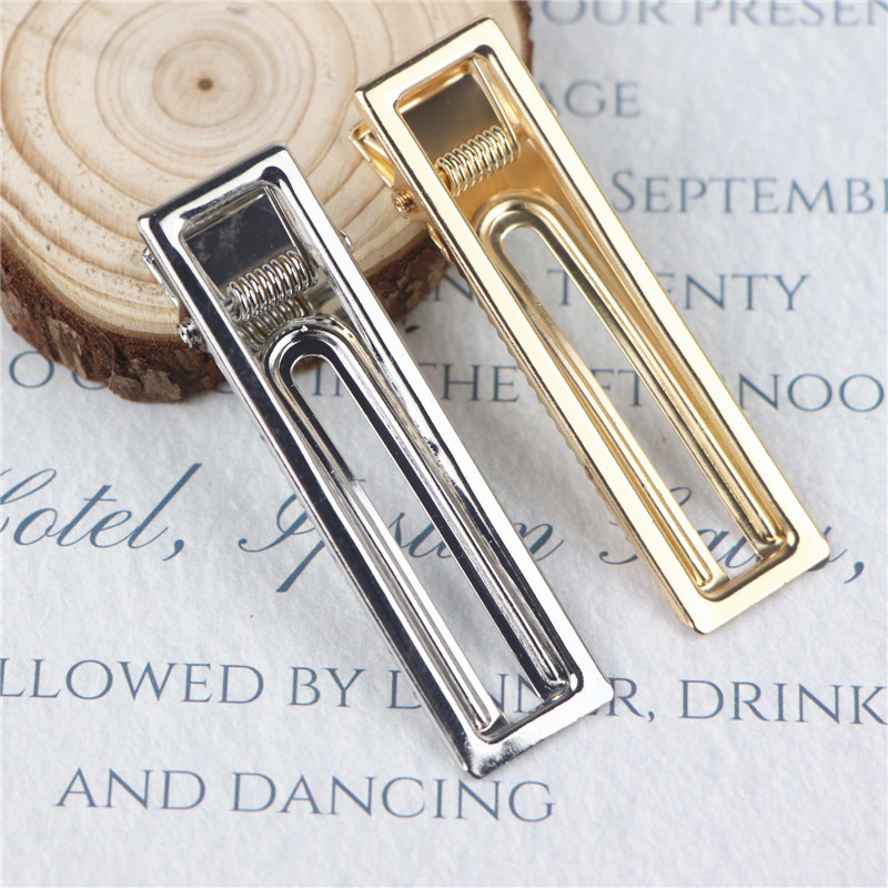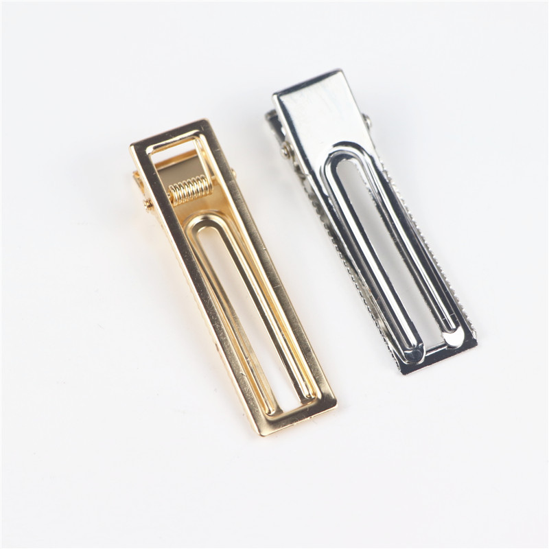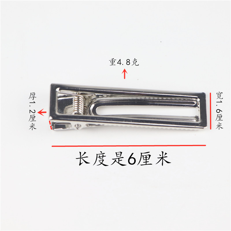 畅销镂空形夹子,长6厘米,宽1.6厘米,厚1.2厘米,重4.8克,款式有皇冠形,水滴,桃心形,8字形,方形等,其他款式也有,也可以做成包布的,量大可以定做加工。