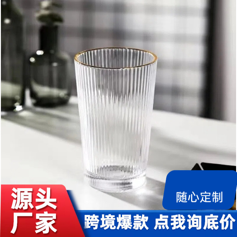 縦条透明金辺ガラスコッププレゼント創意家庭用ビールカップウイスキーカップメーカー卸売り