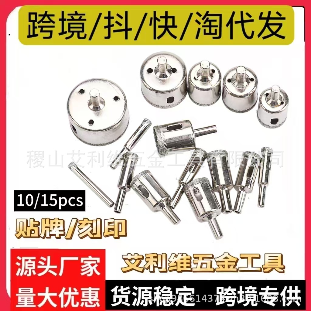 10/15pcsメッキ金刚砂ガラスドリルタイル大理石セラミック穴あけ器ドリルガラス穴あけ器