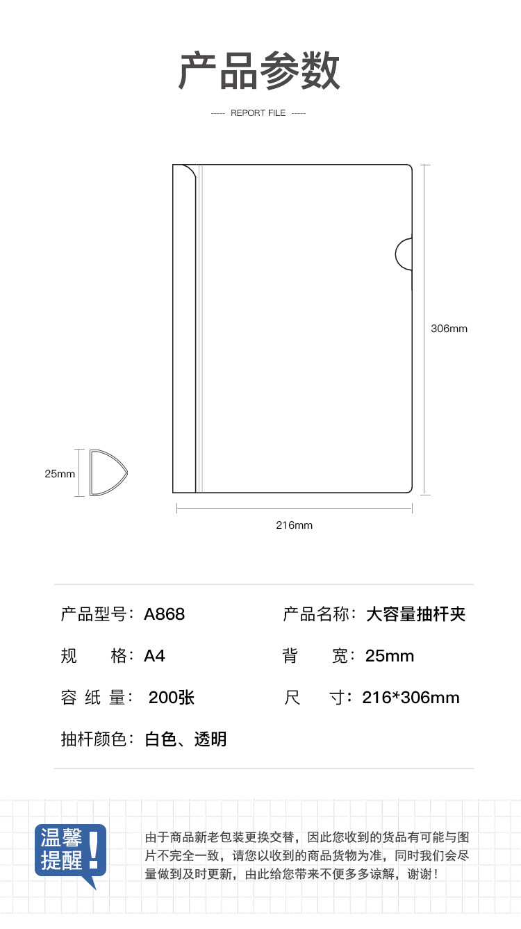 仕様 10枚入り、70g A4用紙30枚収納可能 Q310-1,厚手版 10枚パック 70g A4用紙 Q310が30枚収納可能,厚くて広がったモデル、10 パック、70g A4 用紙を 60 枚収納可能 Q312,5mm ホワイト ロッドクリップ 10個入 A850,大容量ロッドクリップ A868 200個