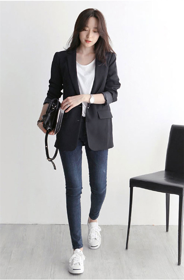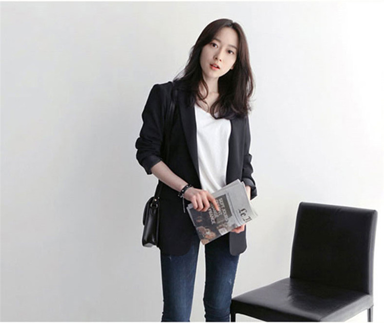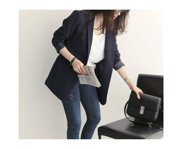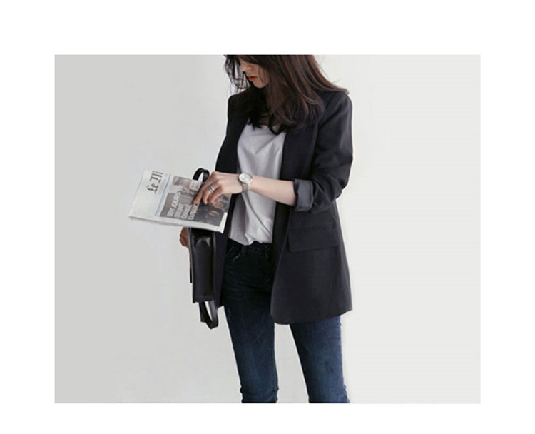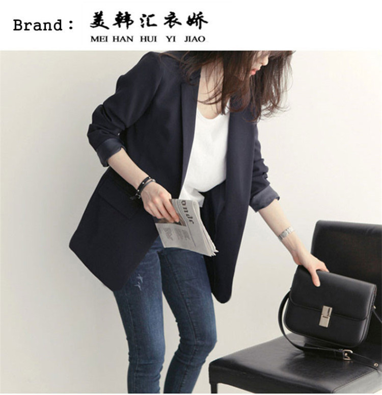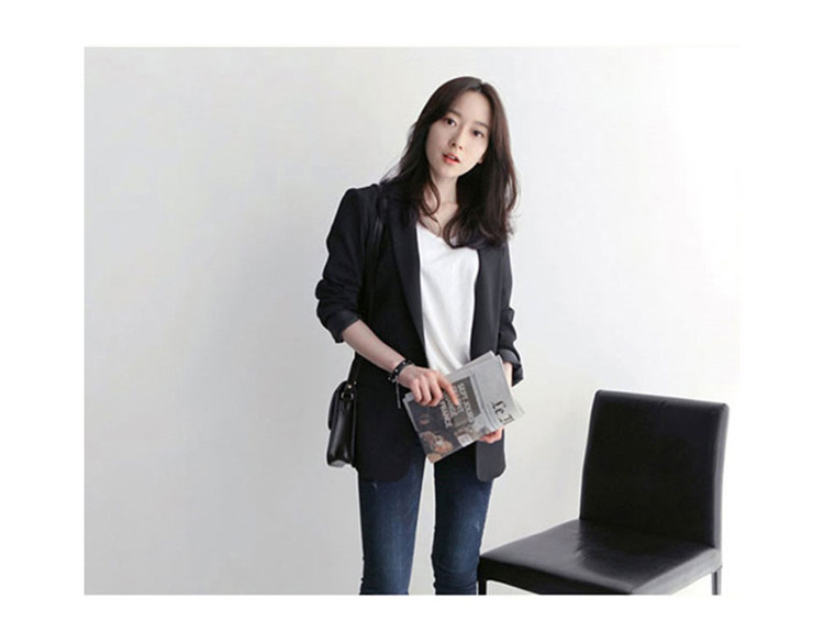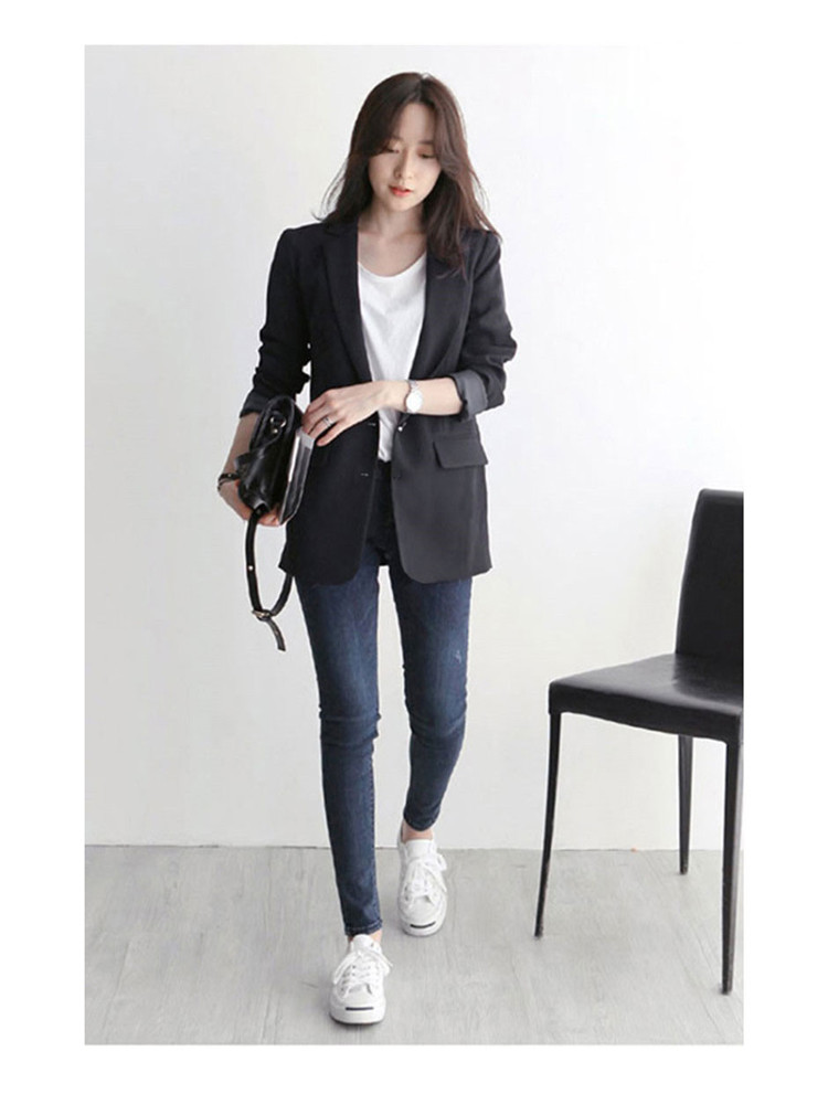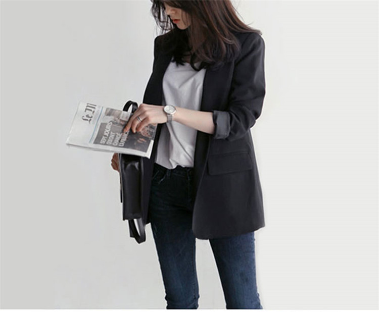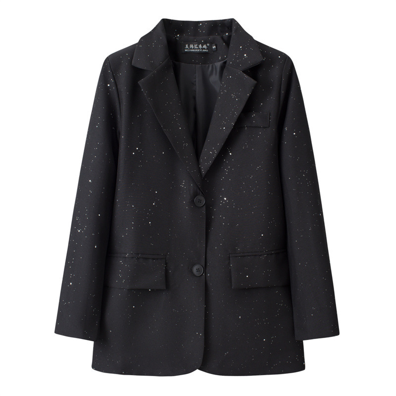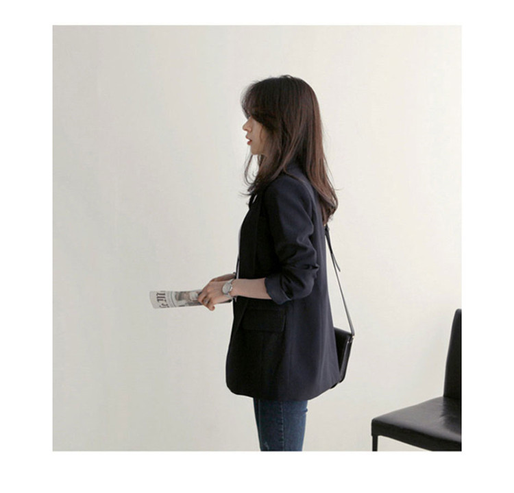 黒の小さいスーツのコートの女性の春秋韓国版のゆったりした気質の百合のダブルボタンのカジュアルな職業のスーツの上着の新しいです。
