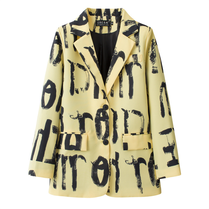 黄色の小さなスーツジャケット レディース 春秋 2026年新作 韓国風 ストレート カジュアル 個性的デザイン トレンドトップス