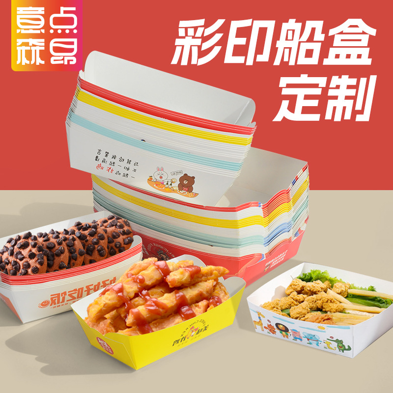 カラー印刷船箱使い捨て牛皮厚手食品級団子軽食寿司菓子鶏塊包装紙弁当箱