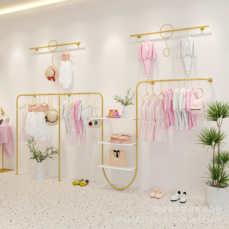 铁艺金色服装店展示架上墙壁挂式男女童装店专用置物架挂衣架货架