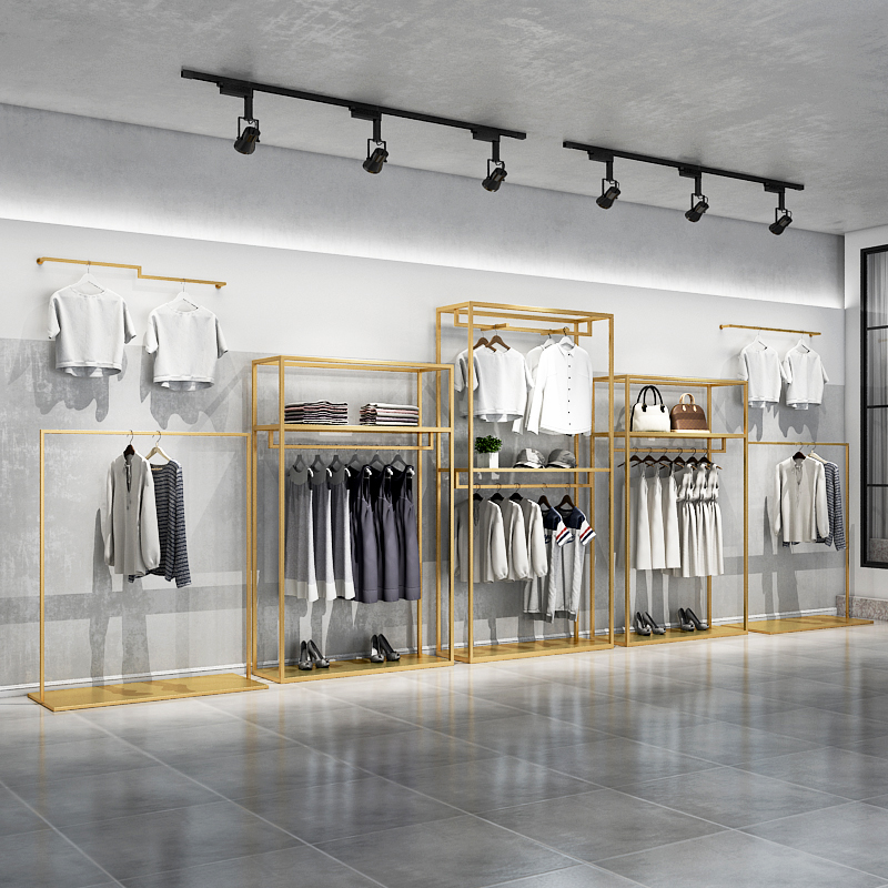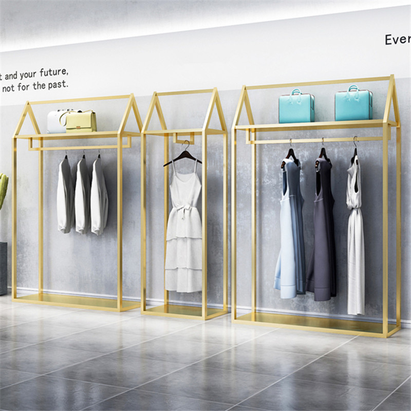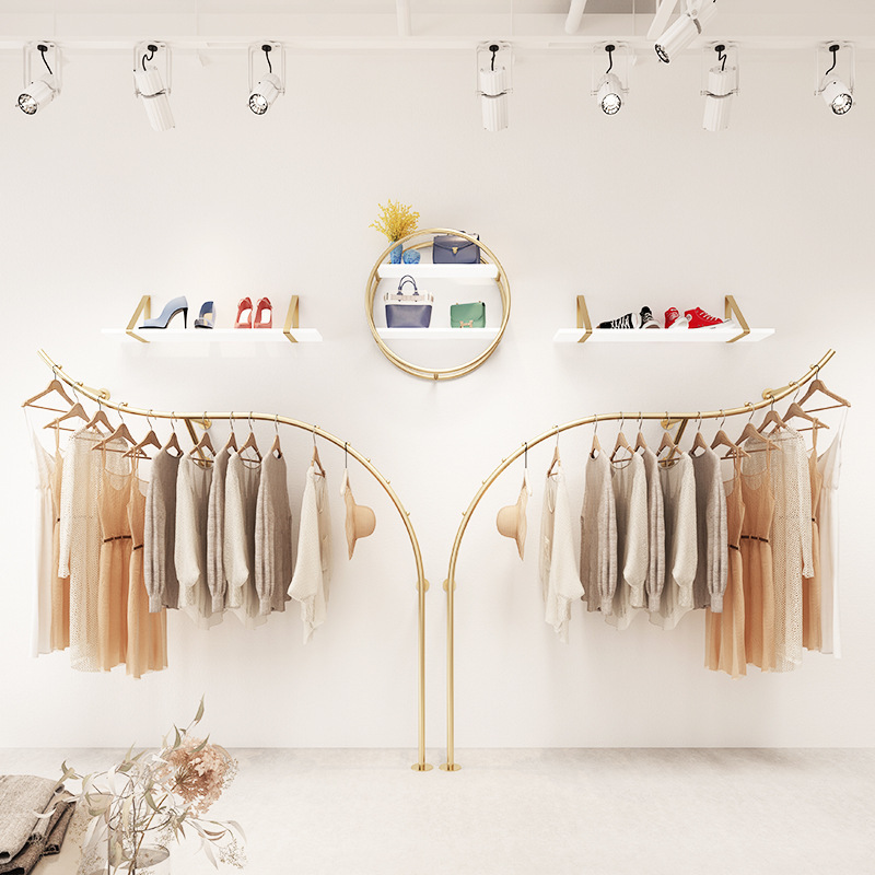 洋服店のバッグ棚展示棚金色の洋服棚婦人服店の棚床置き式シンプルな服装帽子ハンガー車輪付き