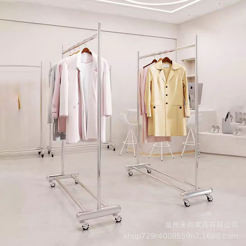 ステンレス製ディスプレイラック衣料品店床置き衣類ラック衣類乾燥ラック生放送室モバイルアイランドラックコートラック