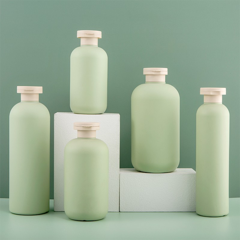 現物200/300ml 500mlの丸い肩の牛油果の緑色の手洗いの液体の瓶はPEのシャンプーの入浴する露の瓶を分けます。
