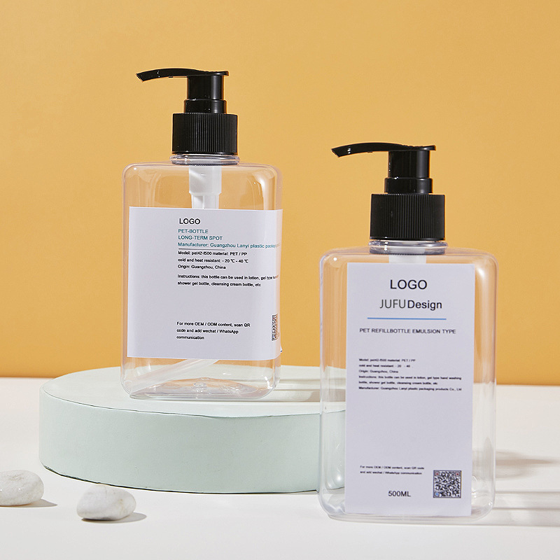 500ml四方瓶ホテル入浴剤シャンプーボトルpet透明角形無洗ゲル手洗い瓶