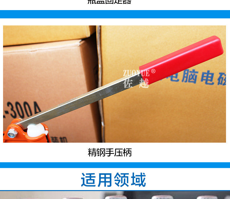 原理及特点:电器自动控制,稳定好。设有压盖定位装置,锁盖标准,操作方便。锁盖范围宽,可压各种形状规格的瓶盖。压盖速度快,旋的牢,同时也可根据需要调节松紧度。