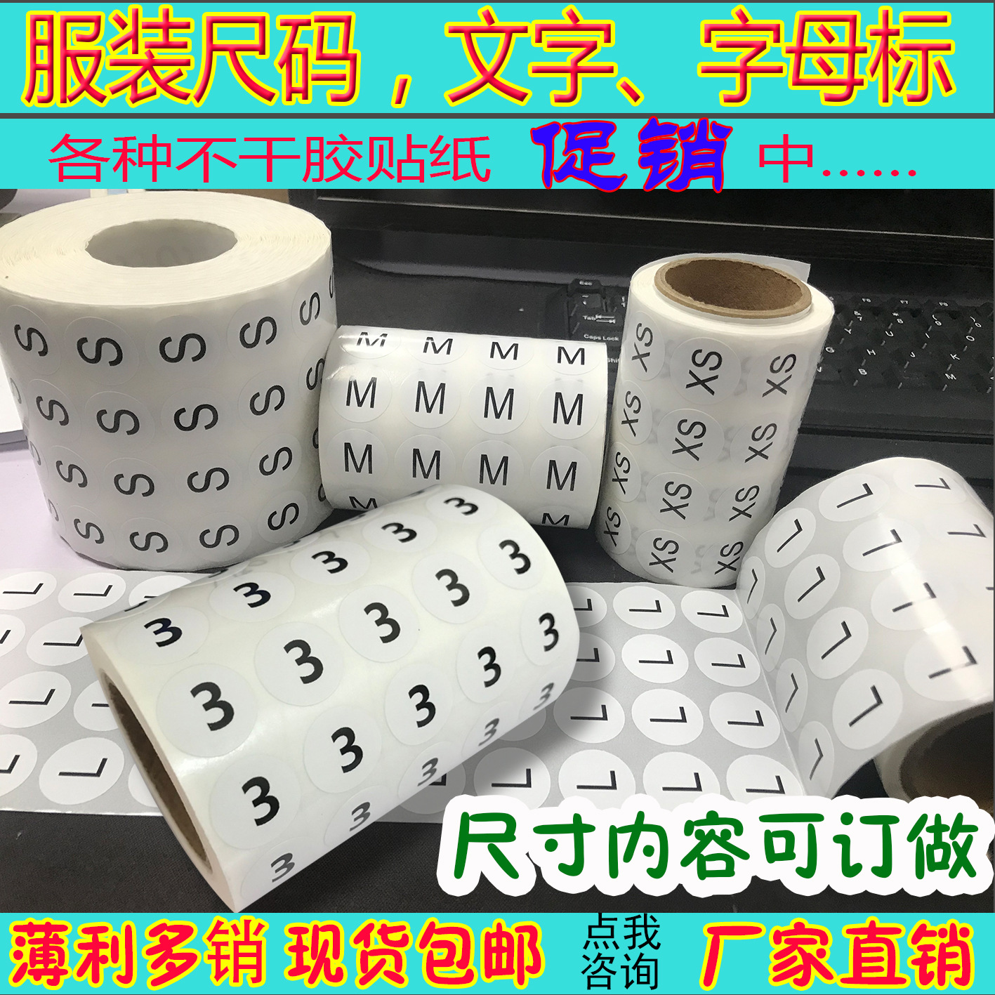 現物数字ステッカーラベル1-100円形マーク生放送服サイズアルファベットカラードットシール
