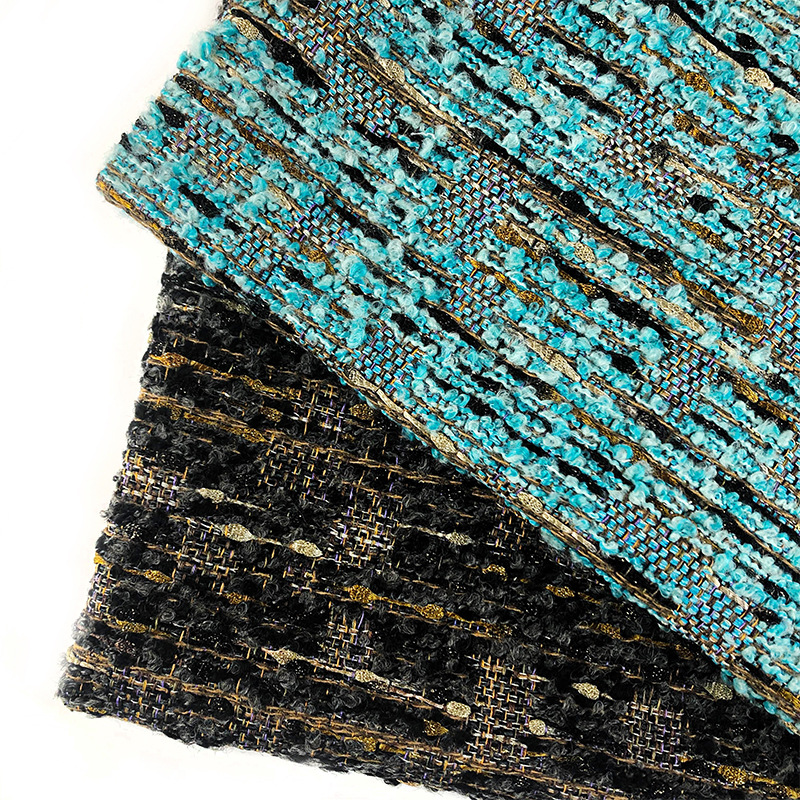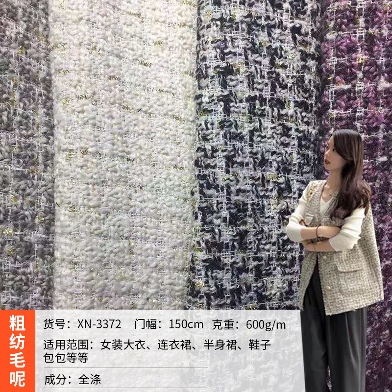 レディースコート新作ツイード生地格子小香風粗織金糸編みコート生地