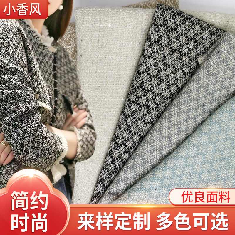 高級粗紡小香風スパンコール綿服コート靴帽バッグ手作りdiyファッションスカートポリエステル生地
