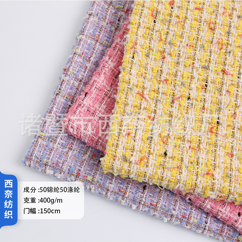 小香風粗紡織粗花編み生地ワンピース格子女性セット対外貿易生地卸売り