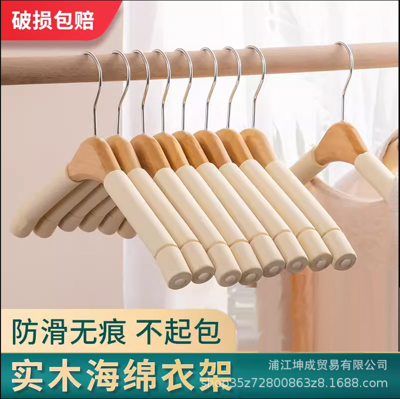実木スポンジハンガー滑り止め無痕家庭用ハンガー衣類店収納衣類掛け肩掛け防止ハンガー