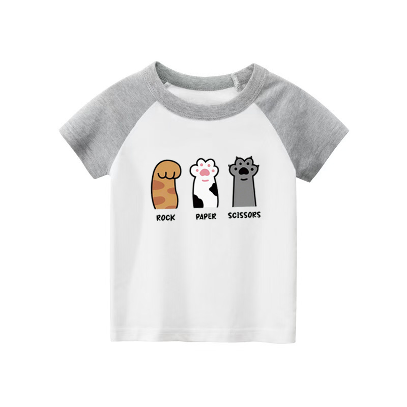 ボーイズラウンドネック半袖子猫半袖Tシャツ漫画男性と女性のプリント多用途ニットトップ夏