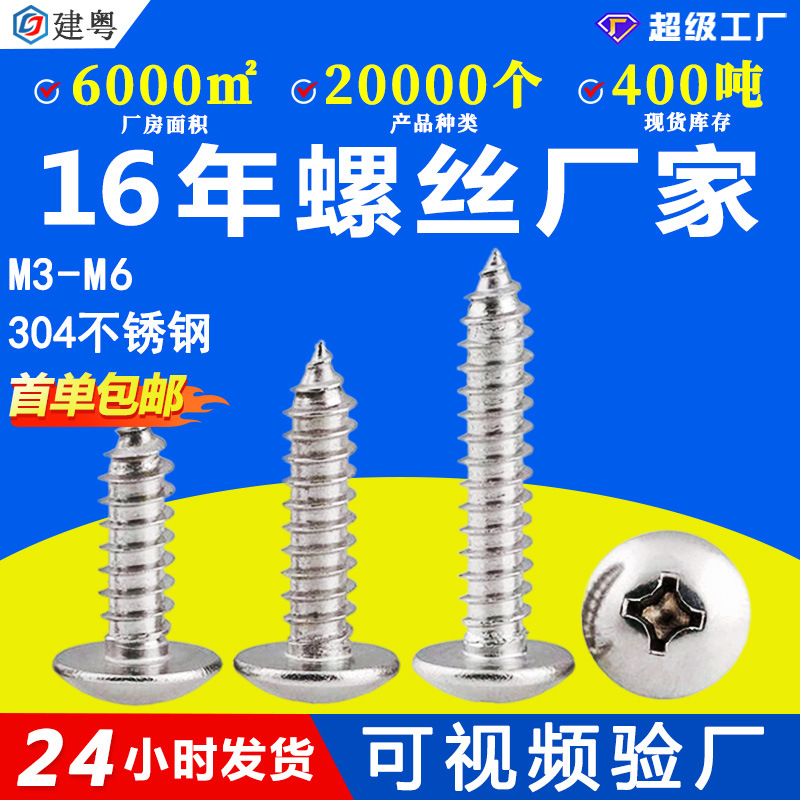 304ステンレス鋼丸頭ネジ 十字穴付き皿頭タッピングネジ TA十字大皿頭タッピングネジ M4
