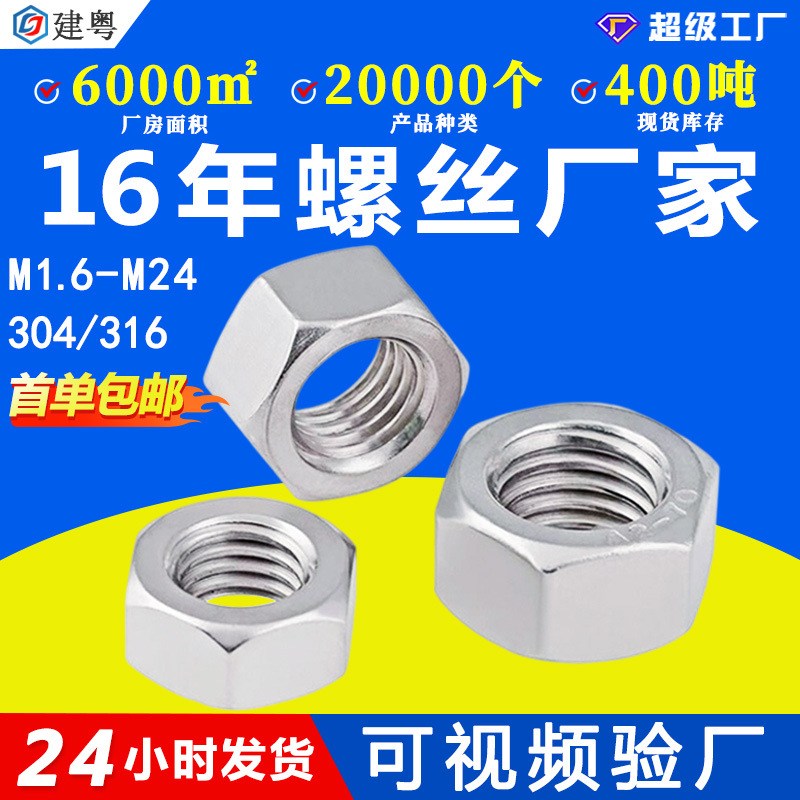 304ステンレス鋼六角ネジナット316防水防錆外六角厚ナットM4ロック六角ナットM6