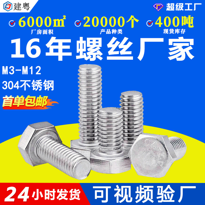 304 ステンレス鋼外側六角ネジ M6 全ねじ国家標準六角ネジ M8 防錆外側六角ボルト M10