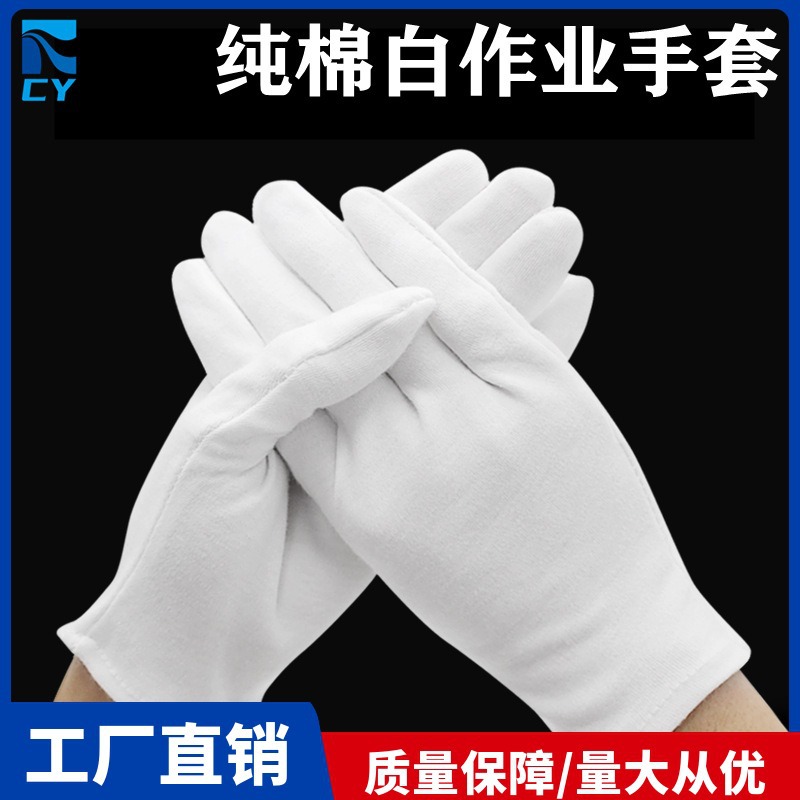 白い綿手袋、厚手で耐摩耗性、保護作業用手袋、白い手袋、文房具、宝石、儀式、品質検査、労働保護用手袋