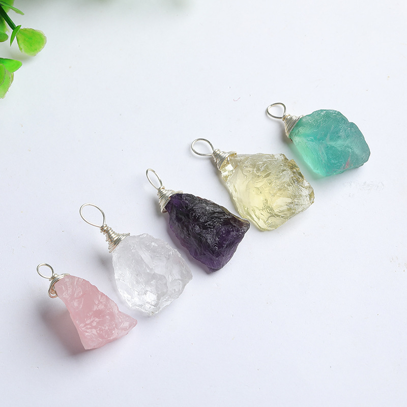 クロスボーダー熱売天然粉水晶紫晶白水晶不規則原石ペンダントネックレスメーカー卸売り
