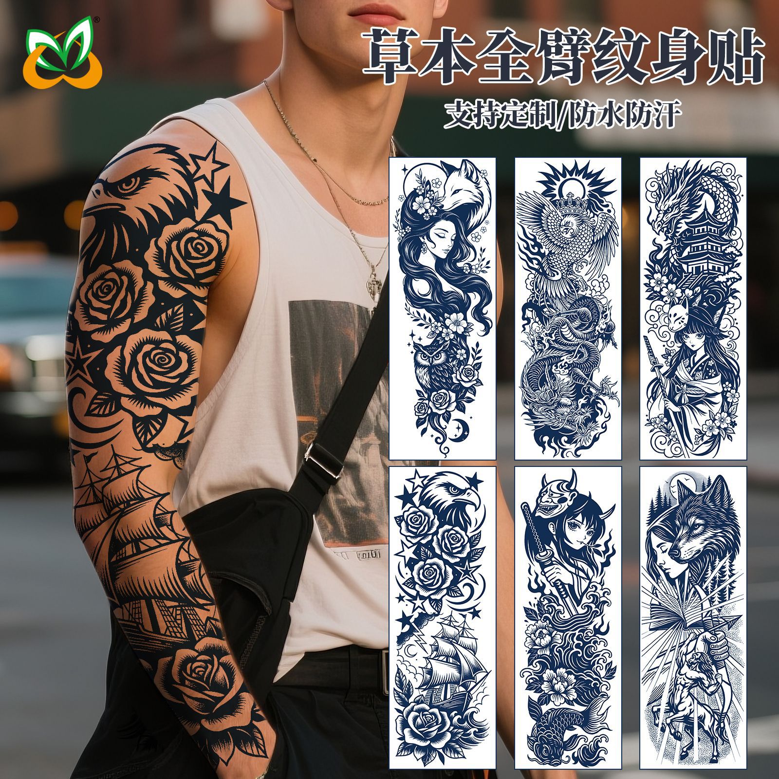 亚马逊新款草本全臂纹身贴纸持久哑光街头潮流男女半永久全臂纹身