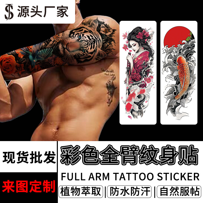 新款花臂防水防汗彩色全包纹身贴跨境纹身贴纸欧美风仿真高级感