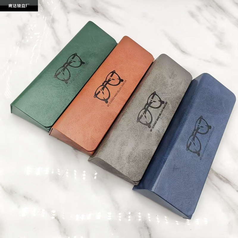 三角眼镜盒少女便携简约皮制防压复古近视眼镜盒子墨镜盒男生