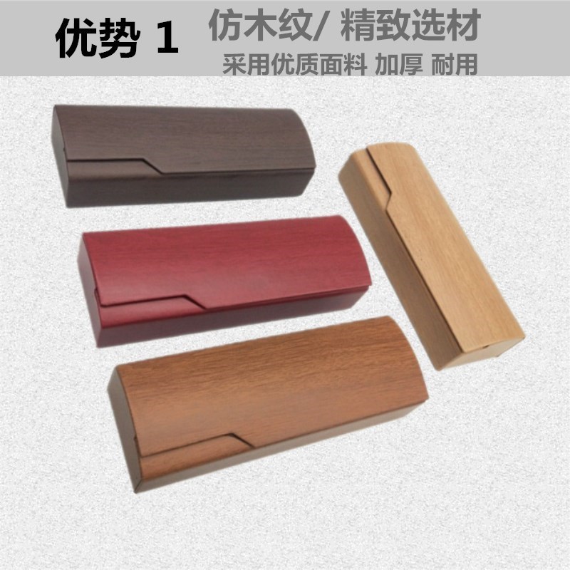 木目調の少ない口フリップトップ手作りメガネケース在庫あり耐圧光学フラット近視老眼鏡ケース印刷可能