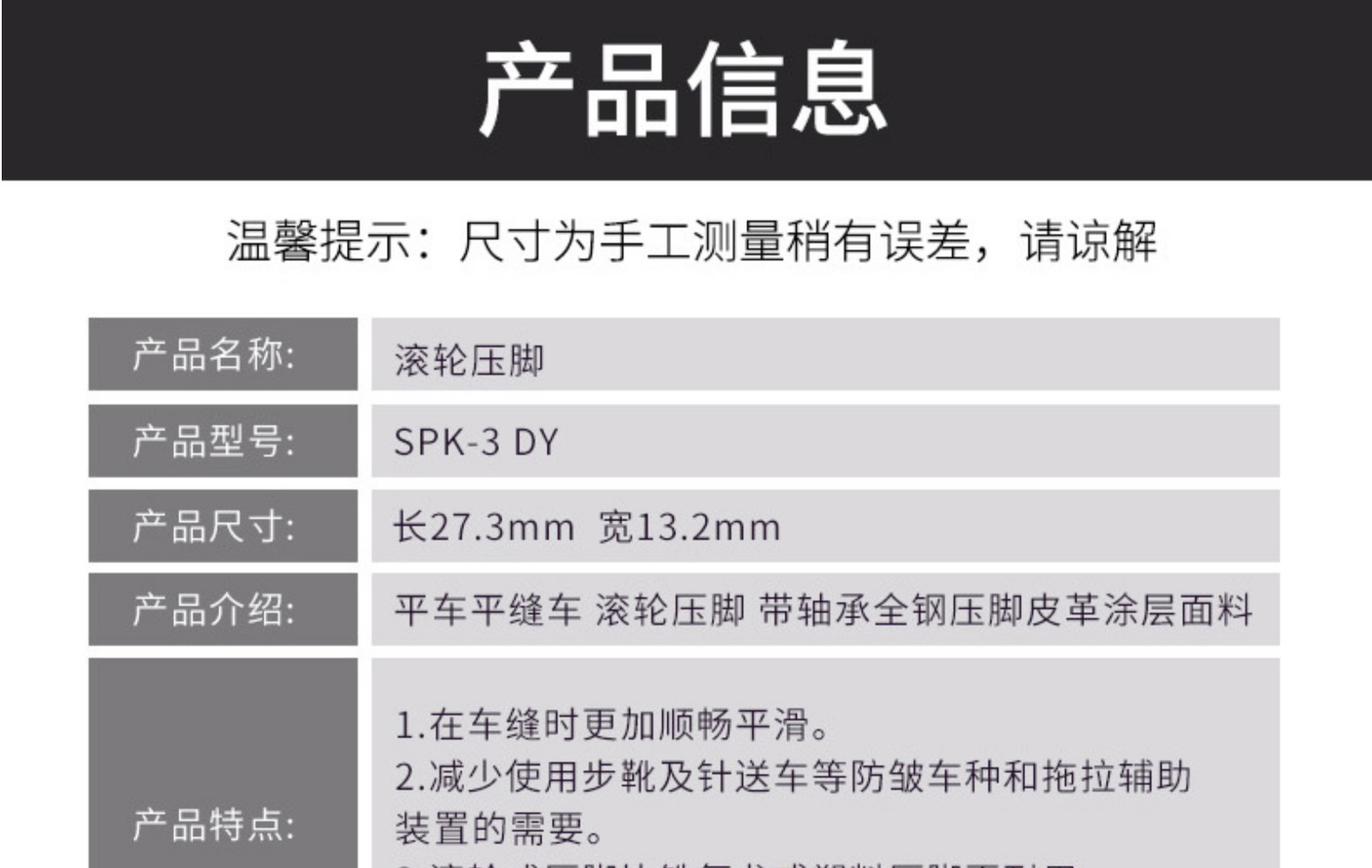 SPK-3 dy大宇平車ベアリング付きローラー押え革コーティング生地押え平縫い機