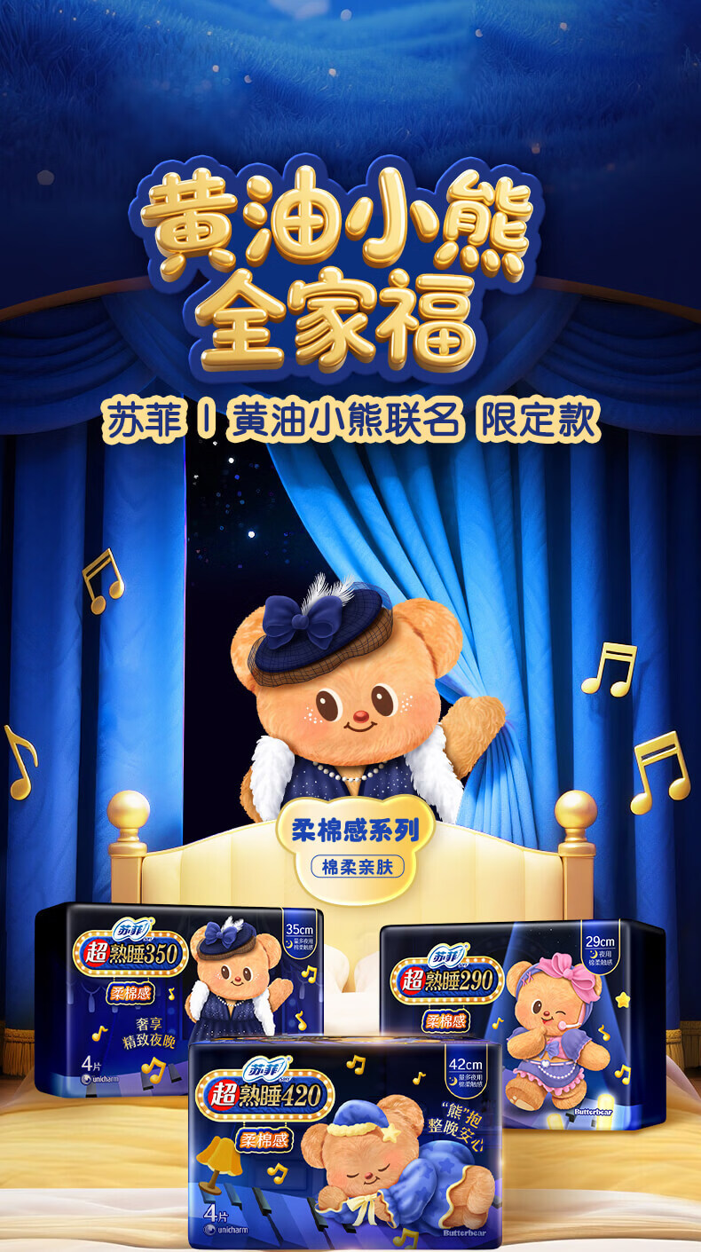 ソフィーは熟睡して柔らかい綿感の生理用ナプキンを持っています。